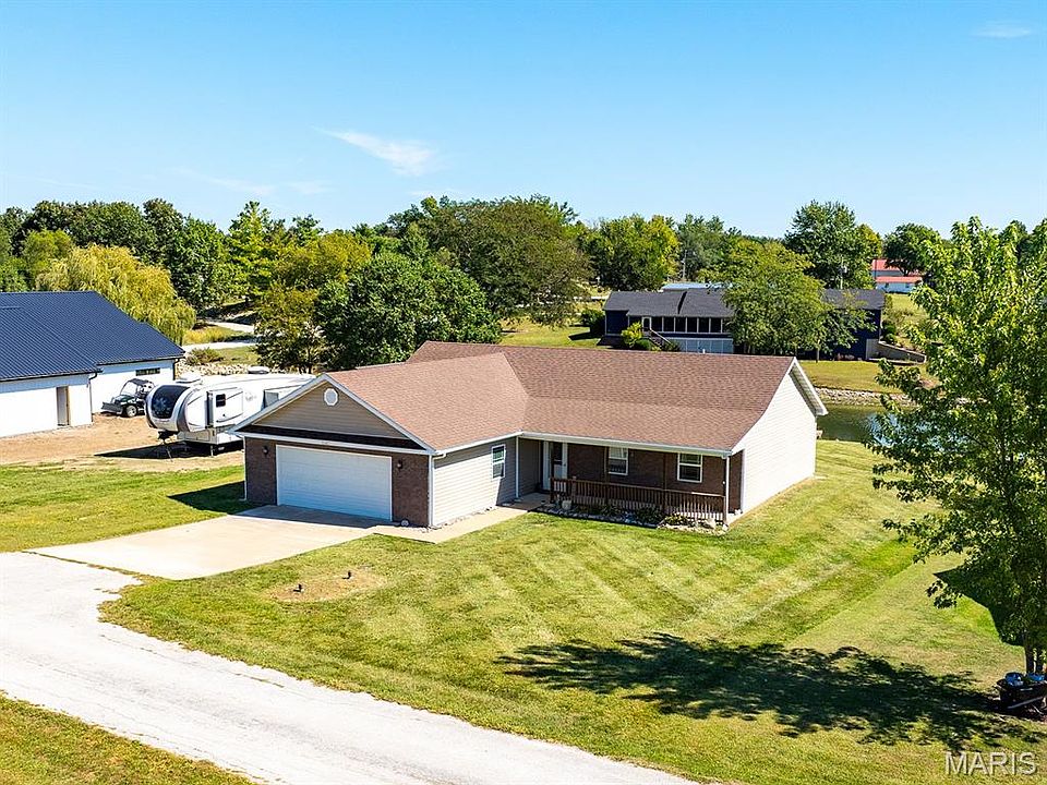 Ranch style, all main level living, and backs to a lake! Welcome to this home that has three bedrooms and two bathrooms. Open concept living room, dining room, and kitchen with hard surface flooring. Kitchen has all appliances and breakfast bar. Off of the dining room is a door to the patio and backyard with acces to lake and private dock. Two car attached garage with storage room. Home is located in Lake Hannibal Estates with access to clubhouse and lake. This property features no steps, low maintenance living, and a serene setting.