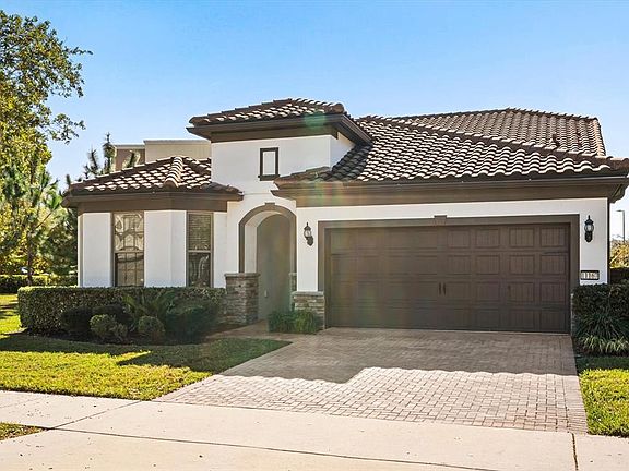 Stunning Mediterranean-style 3-bedroom, 3.5-bath, Office & Loft home located in the exclusive gated community of Ruby Lake. This beautifully maintained two-story residence features a bright, open layout with large sliding glass doors that lead to a spacious covered lanai complete with a full outdoor summer kitchen—perfect for entertaining. The gourmet kitchen showcases quartz countertops, an oversized island, stainless steel appliances, gas cooktop with hood, double oven/microwave combo, 42” shaker cabinets, and subway-tile backsplash. The first floor offers two bedroom suites, including a generous Owner’s Suite with dual vanities, walk-in closet, glass shower, and soaking tub. A flex room off the main living area is ideal for an office or guest room. Upstairs includes a private bedroom with full bath and a large loft perfect for a media room or second living space. Additional highlights include well-maintained interiors, generous storage throughout, and a bright, welcoming atmosphere in every room. Ruby Lake provides resort-style amenities—pool, clubhouse, fitness center, splash park, tennis courts, fire pit, and a lakefront pier with nightly firework views. Conveniently located near top-rated schools, Restaurant Row, major highways, and Orlando’s world-famous attractions.