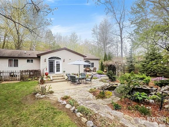 Welcome home to this 3 bedroom, almost 1700 sqft ranch with a kitchen and yard to die for! First this beautiful kitchen was remodeled with gorgeous custom cherry cabinets, beautiful granite counter tops imported from Africa, new stainless steel appliances, custom built pantry, and a large two-tier island perfect for entertaining or cooking large meals for the whole family! This home also features a beautiful family room with built-ins, cozy fireplace, and gorgeous views of the back yard. This 2.5 acre retreat features a waterfall, rock gardens, gazebos, berry patches, fruit trees, a 2nd detached 20x20 garage with a workshop, large chicken coup, and complete with large vegetable and herb gardens! Please come join us and take a tour of this wonderland this Saturday, May 12th from 1-3pm.
