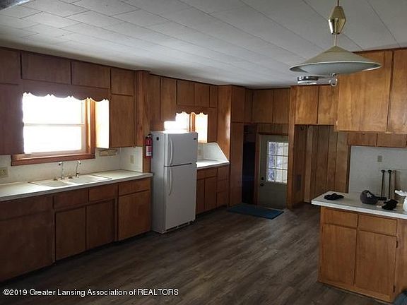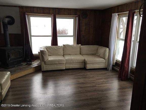 Really nice older farm house with covered porch and patio. Huge kitchen, first floor laundry, great yard with childrens playset swing included, includes pole barn and windmill too.