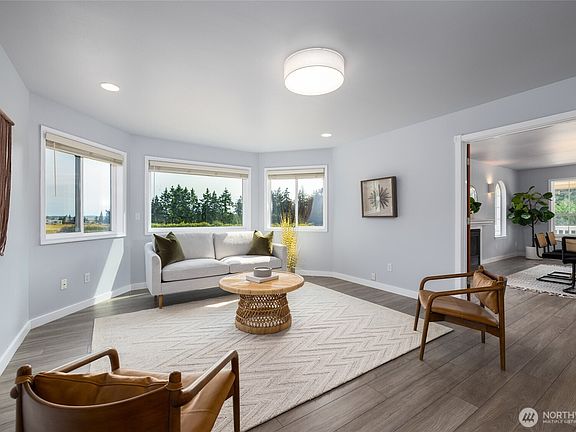 Bay View home on 2 acres, a shop, and views of rolling hills! This move-in-ready gem offers a bright, open layout with high ceilings, updated finishes, and a spacious kitchen perfect for entertaining. Wake up in your private primary suite and step outside to a large wrap around front porch ideal for relaxing. Need space? Four bedrooms, plus a dedicated office, and a bonus room! The detached shop is perfect for hobbies, with a bonus studio building. Enjoy the sports court, mature landscaping, large back deck, privacy, and peace of mind with newer systems like central AC. Located minutes from Bay View State Park, Padilla Bay trail, marinas, and stellar dining. Rare opportunity—don’t miss your chance to live the rural coastal PNW lifestyle!
