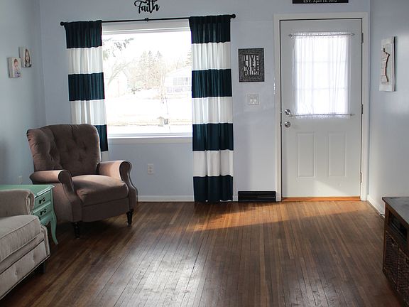 Move in ready starter or retirement home with many recent upgrades. New Lennox furnace in summer 2017 with transferrable warranty and wifi compatible thermostat. Recently serviced central air and high efficiency hot water heater. New front and rear entry doors with Larson screen doors and full glass inserts. New living room picture window. Hardwood floors throughout spacious living spaces and bedrooms and premium vinyl floors in bathroom and kitchen. Solid oak vanity with solid surface counter, new faucet, lighting and toilet in bathroom. Kitchen offers solid wood cabinets, subway tile backsplash and wall wainscoting. Refrigerator, range hood and microwave all new within the last year. Open and dry unfinished basement with designated laundry area featuring new cabinets and countertop, high efficiency front loading washer and dryer less than 5 years old. Home has sound foundation walls after professional repairs made fall of 2016. New sod lawn, block patio, 4 raised perennial flower beds and a vegetable garden highlight the yard. New gutters on the garage. Upgrades too numerous to list! Come take a look!