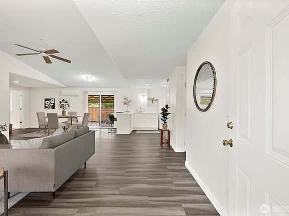 Like-new 4-bedroom, 2-bath rambler with modern updates and an ideal Puyallup location. Enjoy a thoughtfully designed home for easy living, with an open floor plan that flows effortlessly. Updated kitchen with newer cabinets and counters, brand new LVP flooring. Fresh paint inside & out, while a 2023 heating and air purification system ensures year-round comfort. Solar panels, gutter guards, mini-split cooling, and ceiling fans add comfort and efficiency. The private primary wing offers a tranquil retreat. The oversized corner lot invites endless possibilities—relax in the fenced yard, garden, or enjoy the workshop. Clark’s Creek Park is steps away with trails, dog park, and playground—close to downtown without the fair traffic.