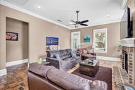 Convenient covered rear parkingBrick floorsBuilt-in cabinetryElegant crown moldingWelcoming front porch