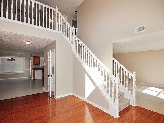 Classically styled siding with stacked stone detail on the facade of this Locust Grove home. This beautiful home greets you with a grand two-story staircase in the foyer that flows into the open floor plan of the main level. The formal living and dining space flow into the enormous kitchen and then into the family room with a cozy fireplace. The master suite is monumental with trey ceilings, over-sized walk-in closet, and expansive bathroom with separate garden tub and stand up shower, dual sinks with plentiful counter space, and separate toilet room.