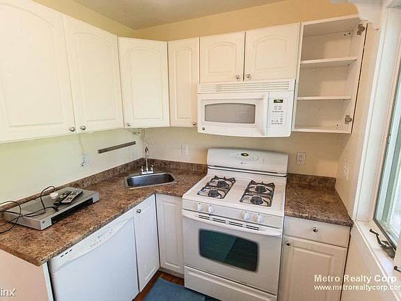 Park like setting private 2+ bedroom w parking nr shopping and T - Set back from the street in a park like setting is a private 2+ bedroom Apartment (townhouse) in Chestnut Hill / Brookline. Nicely renovated Kitchen and bathroom. First floor has private entrance, living - dining room combo with bay window. Kitchen has gas cooking, microwave, dishwasher, under counter lighting and large refrigerator. Second floor has 3 rooms. Two can be used as bedrooms and one as home office. Laundry in basement. Central A/C. ALL utilities are included in rent and 2 car parking. Chestnut Hill T station a few blocks away, The Street and The Square shops & restaurants are very close. For a showing Call Metro Realty at 617-232-2255 No Dogs Allowed (RLNE3200121)