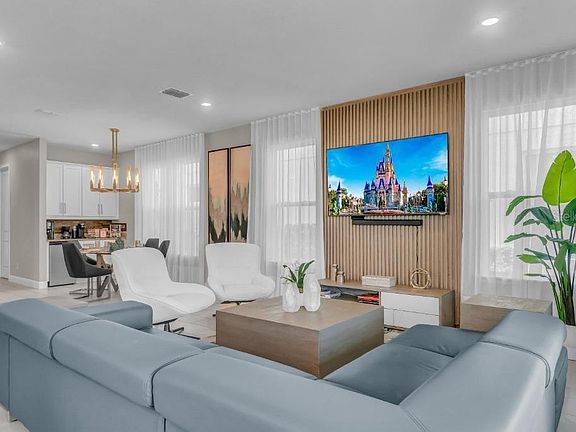 Experience luxury living in the world-renowned Reunion Resort with this stunning 6-bedroom, 5.5-bathroom home offering 3,428 sq. ft. of fully furnished space. Built in 2021, this property combines modern design with exceptional comfort, making it an ideal primary residence, second home, or investment property. Inside, you’ll find a beautifully designed kitchen featuring stainless steel appliances and a coffee bar with an under-counter fridge. The converted garage adds 395 sq. ft. of fun, transformed into a Star Wars–themed game room. The home boasts two primary suites—one on the first floor with a walk-in closet and spa-like en-suite bath, and another upstairs with a private balcony, soaking tub, and walk-in shower. Additional themed bedrooms with en-suites and bunk beds provide the perfect retreat for guests. Step outside to a covered lanai designed for entertainment, complete with an outdoor dining area, wet bar, and under-counter fridge—all just minutes from Orlando’s world-famous attractions.