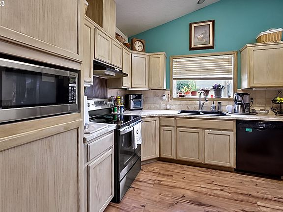Step into this freshly updated gem, perfectly situated within walking distance to schools and nestled in a peaceful neighborhood. Flooded with natural light, its open layout invites your personal touch. From the modern kitchen to the cozy living spaces, luxury vinyl plank flooring and new paint make it shine. The covered carport is a nod to Oregon's weather, while RV parking adds extra utility. A deck, covered patio, and fully fenced backyard set the stage for unforgettable summer BBQs. Don't miss this one!