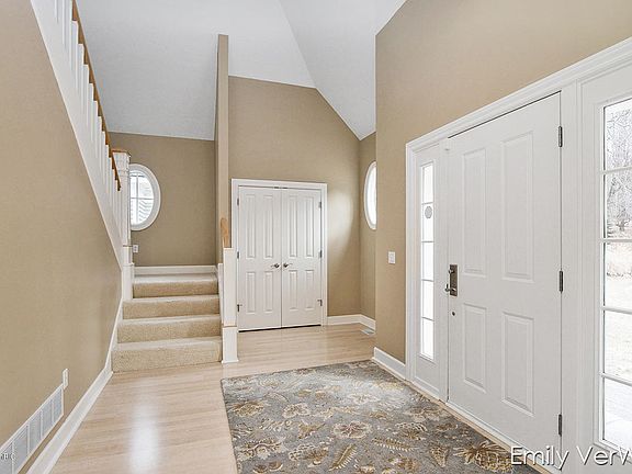 Upon approaching this estate, you will feel as if you are swept away to the seaside homes of the Connecticut shoreline. This New England inspired farmhouse is situated on two pristine acres in award winning Forest Hills Eastern schools and tucked away in a quiet neighborhood, located just minutes from downtown Ada and Egypt Valley CC. Boasting over 5,200 sq feet of living space with 4 bedrooms, 4 full baths and one half bath. The interior is flooded with natural light, elevated finishes and incredible sightlines throughout. The main floor plan has been entirely renovated by the current owners including a complete kitchen remodel, all new flooring, renovated full bath, fireplaces and much more. Upstairs you will find 3 generous sized bedrooms, 2.5 baths all with fresh new paint. The amazing
