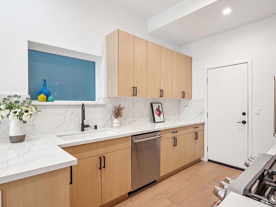 Sunny shared landscaped yardScandinavian-style cabinetryEuropean white oak floorsLuxurious bathroomFreestanding soaking tubQuiet primary bedroomQuartz countertops