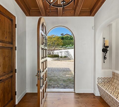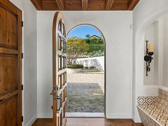 Perched at the bottom of a long private driveway in the hills of The Riviera, this exquisitely designed Spanish residence is the epitome of true Santa Barbara-inspired architecture, against breathtaking jetliner vistas of the Pacific Ocean and city. Boasting jaw dropping views from almost every room, this beautifully designed home was constructed in 2014 with the utmost attention to detail and craftsmanship throughout, with materials that include venetian plaster walls, and custom iron work. The dramatic formal entry showcases double height ceilings, and flows seamlessly into the public areas - featuring an abundance of natural light throughout. Relax and unwind in the living room, with a bespoke stone fireplace, and beautiful french doors that open to a private terrace with pool and ocean views beyond. The formal dining room offers the perfect space to entertain on all scales, with easy access to the gourmet chef's kitchen featuring professional grade appliances, Carrera marble countertops, walk-in pantry and oversized island with breakfast bar. The primary suite is a true retreat with a private balcony, beautiful fireplace, spa-like bathroom with soaking tub, dual vanity, and walk-in closet. Three additional suite-like bedrooms include a junior primary, and all feature views of the ocean or verdant landscaped grounds. Additional highlights include a temperature controlled 300 bottle wine cellar, TV room, and game room that opens to the terrace. No expense was spared in the private back yard - a true entertainer's paradise, complete with a sparkling swimmers pool and spa, ocean view veranda, firepit and outdoor kitchen complete with pizza oven and bar. This is a rare opportunity to own an exquisite Spanish home featuring breathtaking views, just minutes from the best shops, restaurants, and entertainment Santa Barbara has to offer.