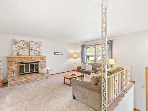 Check out this inviting split-foyer situated on a corner lot. The main floor features a bright living room with a beautiful stone fireplace. Just off the living room is a large kitchen and dining space with lots of cabinets. The appliances will all stay, including the refrigerator and dishwasher new this past summer. Off the dining space is a 3-seasons sunroom—lined with windows. Enjoy the sunshine all year and an elevated view of the privacy fenced yard, patio and backyard garden. Plus, under the sunroom is a nice built-in storage shed to hold your patio furniture for the winter. Back inside and down the hall are 3 comfortable bedrooms and a full bath featuring dual vanity sinks. The lower level offers even more finished living space, including a cozy family room with a brick wood-burning fireplace and direct access to the attached two-stall garage. You also have a convenient laundry room with a utility sink, ample cabinetry, and counter space. The master bedroom or 4th bedroom is quite spacious featuring double closets and across the hall a second bathroom with a walk-in tub. While the home could benefit from cosmetic updates such as fresh paint and light fixtures, the house offers permanent siding and updated replacement windows. The house has a solid layout, generous spaces, and a desirable location, a fantastic opportunity to personalize and make your own! Schedule a showing today!