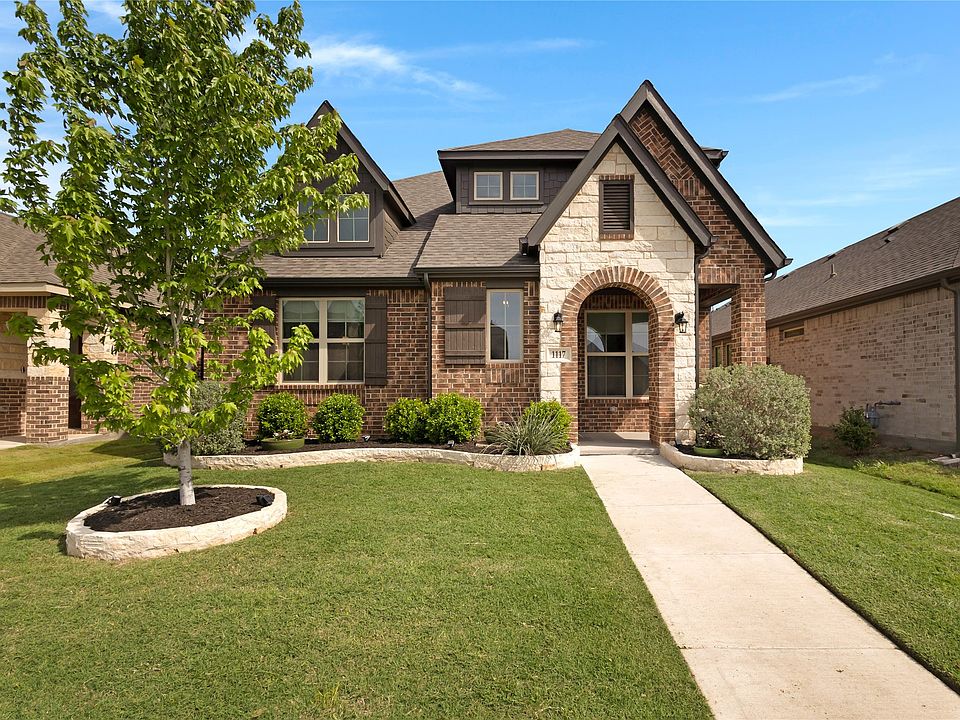 Welcome to this beautifully designed 3-bedroom home (4BR-Option) in the highly desirable Wildflower community of Justin, TX. With over 2,500 sqft of thoughtfully designed living space, this home combines comfort, elegance, and functionality. Step inside to an inviting open-concept layout featuring a bright, spacious kitchen with an oversized quartz island that seats six, a gas range, and ample custom cabinetry. The kitchen flows seamlessly into a dedicated dining area and vaulted-ceiling living room filled with natural light and equipped with motorized shades. The main-level primary suite offers a spa-like retreat with a soaking tub, large walk-in shower, dual vanities, and a generous closet. Enjoy a versatile upstairs with family and media rooms, two bedrooms, and a unique oversized pass-through bathroom. Just steps from the elementary school, Wildflower also features a resort-style pool with lazy river, parks, trails, and more!