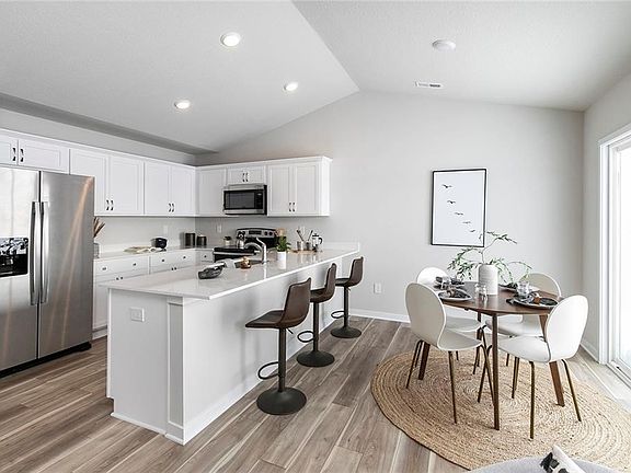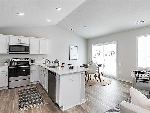 As you step inside you will be greeted by the designer inspired light & bright color scheme that fills your entire space w/warmth & elegance. The open concept layout seamlessly connects your family room, dining area & kitchen, creating a sense of spaciousness. The kitchen is truly a chef's delight w/huge quartz island, ample cabinet space & all kitchen appliances included! With 3 nicely sized bedrooms & tons of closet space there is plenty of space to relax & unwind. The vaulted ceilings & abundance of windows allow natural light to flood in through the day. Bonus Feature; an oversized 24'deep garage! This spacious garage is a very valuable feature as there is plenty of room for your vehicles, add'l storage and/or workshop space! This beautifully designed bi-attached ranch home is located in Kimberley Crossing w/an Annual HOA fee, living like a single family home w/covenants. North Polk Schools w/option to open enroll in Ankeny Schools! Built by Progressive Builders, a Kimberley Company - building in Iowa since 1975!