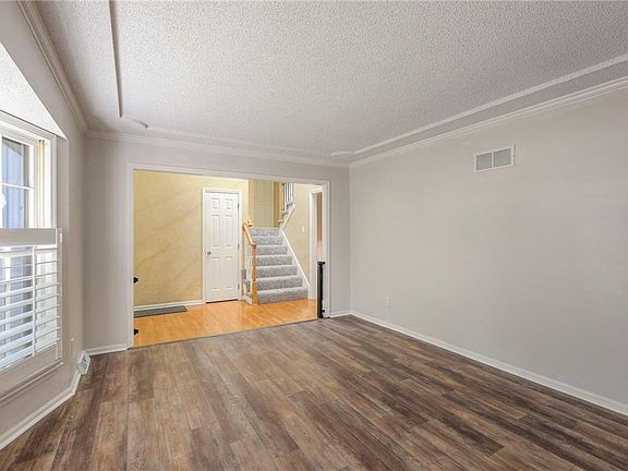 - Elegant PVT plank flooring in the dining and living rooms adds warmth and durability. These rooms have also been freshly painted.