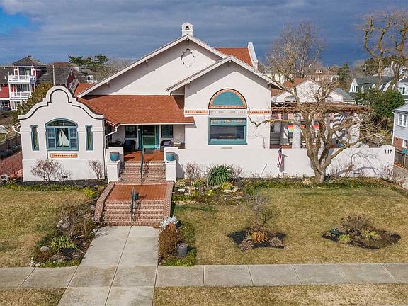 Come see where Cape May meets California in the splendor of this magnificent 110 year old Western Craftsman home that over the years has blended the stately and unique architecture of the house with all the modern conveniences. Walk up the majestic brick staircase, through the front door and you are immediately captivated by the living room with it's 16 ft. barrel ceiling, original hardwood flooring and artistic murals on the walls. The awe continues with the over-sized brick fireplace, and as large as the room is, it still manages to envelope you with a comfortable and cozy vibe. Step down into the over-sized solarium that catches the morning breezes and sun year-round. The wet bar, custom built-ins and the hand-crafted stained glass windows makes this gathering spot one of our favorites, and will surely become one of yours as well. The vast kitchen with it's own outside entrance also hosts an over-sized pantry area perfect for pampering the chef of the house. A grand dining room spills onto the veranda for inside/outside dining and entertaining. The raised veranda is the most unique outdoor space in all of Cape May, where you and your guests will want to have all your meals, all while catching ocean breezes overlooking the well-manicured lawn and gardens below. This home features eight large bedrooms, each with their own updated en-suite bathrooms and fireplaces allowing plenty of privacy for visiting guests, friends and family. The lower level of the house is a full size basement with both interior and exterior access and extensive built in shelving. The outdoor rear garden and patio is a quiet, secluded relaxing spot with a custom-made gas fire pit as the focal point. This hideaway has enough room for comfortable outdoor furniture and a second outdoor dining area. This superb home has even more to offer with a detached two-story carriage house, complete with a one car garage. Yes - a two bedroom, two and a half bath guest house will be the ideal place for your special invitees. The property is located one block from the finest white sand beaches in the nation. It is within walking distance to Cape May's award winning restaurants, yet nestled in one of the prettiest neighborhoods in town. This home is a must-see property and is perfect for the most discerning buyer. All appointments require a pre-qualification letter upon request.