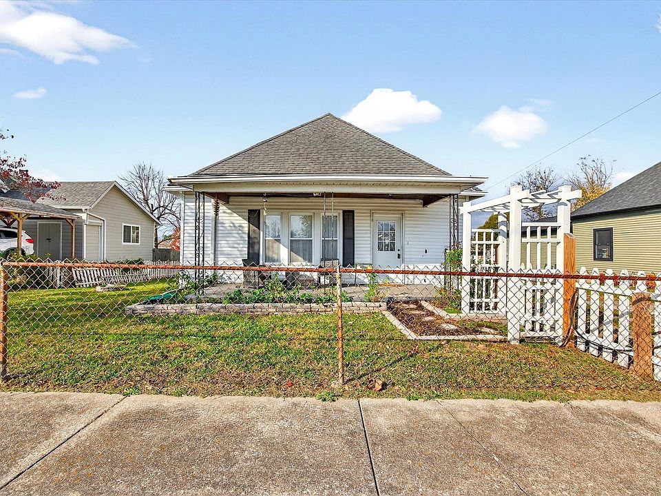 Recently remodeled 3 bedroom and 1 bathroom bungalow. Kitchen comes equipped with appliances and a mobile prep island. Laundry is located in the unfinished basement that also makes a perfect space for additional storage. Sit under the covered front porch and enjoy the partially fenced yard. Home is ready for its new owners! *Raised garden beds and rose bushes are excluded from the sale. This is an estate sale.