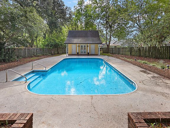 This quintessential southern charmer is the home you've been waiting on. Nestled under majestic oak trees on almost a 1/2 acre cul-de-sac lot in desirable Sterling Oaks, owners can enjoy everyday living with comfort and ease. Front and back porches for sipping morning coffee and listening to the birds chirping, or afternoon tea and BBQ's with friends. Custom built kid's club house and large in-ground swimming pool with additional pool house and fenced backyard. The total package for outdoor entertainment. Step inside to find a traditional, yet open floor-plan with vaulted foyer, real hardwood floors, crown molding, and wainscoting.Downstairs features a formal dining room/ or office, large kitchen with pantry, island, and breakfast nook overlooking the backyard, great room, and downstairs bedroom with full bathroom. Upstairs you will find 2 additional guest bedrooms with a shared jack & jill bathroom, large primary suite with double closets, and private en-suite along with a bonus room which makes for the perfect flex space or 5th bedroom. The Sterling Oaks neighborhood is an established neighborhood in the heart of Moncks Corner that features sidewalks for walking and riding bikes with ease, and a place where homeowners come together during holidays such as the drive-thru annual Christmas luminary lighting event. With close proximity to Main Street in Moncks Corner, owners have quick access to shopping, restaurants, schools, town sports, and commerce.