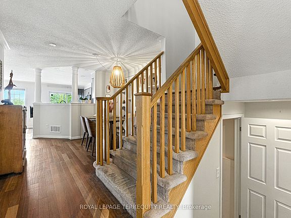 Welcome home to this beautifully updated townhouse, ideally situated in a tranquil neighborhood. This residence offers an inviting east-facing frontage and an exceptionally deep lot spanning almost 120 feet, providing ample outdoor space. Step inside to a home that feels brand new, featuring all new electrical light fixtures (ELF). The main floor showcases elegantly refinished flooring, while the entire second floor boasts brand new, modern flooring, creating a cohesive and fresh aesthetic. Enjoy privacy and comfort with blackout window coverings throughout and enhanced storage thanks to upgraded closets. The spacious finished basement provides versatile living space, perfect for a family room, home office, or gym. The exterior is an entertainer's dream, featuring a freshly finished deck ideal for outdoor dining, and an above-grade pool for summer enjoyment. The property has been meticulously enhanced with new landscaping in both the front and back yards, offering stunning curb appeal and a serene backyard oasis. Added convenience comes with an automatic garage opener. This townhouse is a perfect blend of comfort, style, and practicality, ready for its next owners.