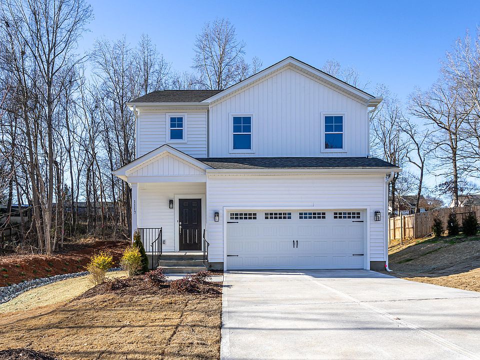 Charming 2-story home on almost 1/2 acre homesite with sealed crawlspace, conveniently located just minutes to 40/85, shopping and restaurants. From the open-concept kitchen and living space to the deck over looking the wooded backyard, there is plenty of space to enjoy with family and friends. Upon entering the home you'll find beautiful luxury vinyl plank flooring that continues throughout the first floor. The spacious kitchen offers a center island, white cabinets with crown molding, quartz countertops, stainless steel appliances and a pantry. The 2nd floor master suite has a ceiling fan with light and adjoins the master bath with tile floors, quartz countertops, brushed nickel fixtures & large walk-in closet. Ceiling fan's in the family room, loft and master bedroom and crown molding in the foyer, dining area, family room, kitchen and master bedroom. Secondary bath upstairs offers quartz countertops, tile floors and tile shower walls.