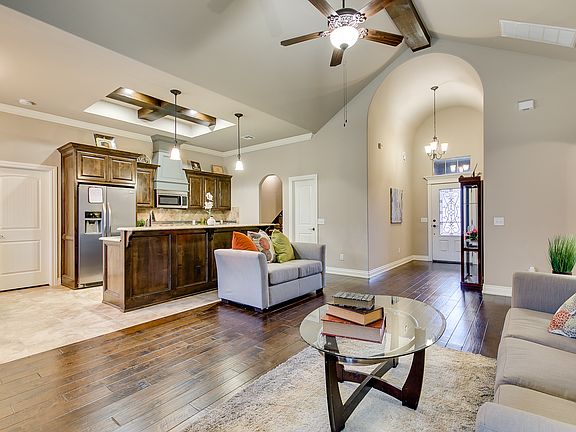 This Beautifully well cared for home is move-in ready! 4 bedrooms 2.1 baths in the highly desired Moore School District. This beautiful home has a large kitchen island which is great for all of your entertaining needs. Granite counter top through-out the home, stainless appliances, walk-in pantry, with lots of cabinet storage. Open Living area, cozy brick fireplace, with beautiful exposed wood beans . Walk-in shower, jetted tub, Large walk-in master closets, Bonus Room that could easily be a 5th bedroom. 3 car garage with STORM SHELTER. Covered patio that includes a built-in gas Grill. So many amazing features in this home, it is a must see! The Rock Creek addition enjoys a private community walking trail, club house, pool, and playground. Just minutes from Tinker AFB, I-35 and many shopping centers. Seller is offering the choice of refrigerator in kitchen or a 1 yr home warranty with acceptable offers.