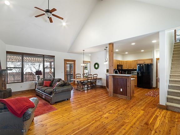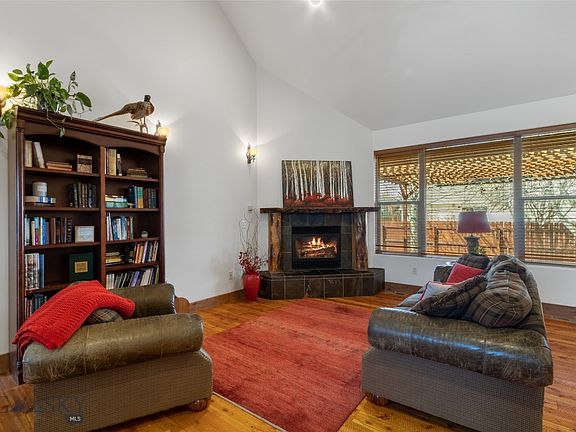 Centrally located with minimal traffic since it's not on a through street! This beautiful home sits next to the neighborhood park and has extraordinary curb appeal. But wait till you come in and see the 4 bedrooms, 3 bathrooms, and additional bonus room. You are greeted by a very tall, vaulted ceiling and circular sawn hardwood floors. The cozy fireplace gives the spacious living area a Montana feel with a clean custom look. There is room to spread out in the oversized Master Suite on one side of the main level. Not only does the Master Suite have vaulted ceilings but its own gas fireplace with a tile shower and soaking tub in the master bathroom. Two additional bedrooms on the other side of the main level create much desired space with additional closets and storage galore. Plus, upstairs you’ll find another bedroom and a large bonus room. The fenced backyard is equipped with a pergola and a large concrete stamped patio plus mature trees for privacy. A rare gem in Bozeman, move-in ready, and under $800K!
