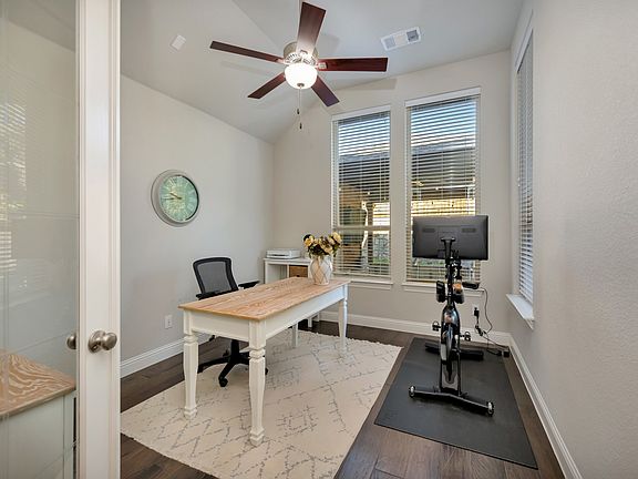 This beautifully appointed home offers 4 spacious bedrooms, 3 full baths, and 2 half baths, all wrapped in stunning curb appeal with a charming brick elevation, lush landscaping, and a rare three-car tandem garage. Inside, the open-concept design strikes the perfect balance of sophistication and inviting warmth. The gourmet kitchen serves as the heart of the home with extensive custom cabinetry, an expansive island built for gathering, premium SS appliances including a gas cooktop, and a stylish butler’s pantry with a built-in wine fridge, ideal for both everyday meals and elevated entertaining. The kitchen flows effortlessly into the sunlit living room, anchored by a dramatic floor-to-ceiling stone fireplace that sets the tone for cozy family nights or elegant hosting. The main level is thoughtfully designed for both functionality and luxury. A private study offers the perfect work-from-home environment, while the first-floor media room is tailor-made for movie nights. Guests will appreciate the comfortable downstairs suite, and the primary suite is a true retreat, featuring a spa-inspired bath with a deep garden tub, spacious walk-in shower, dual vanities and an expansive walk-in closet. Upstairs, the home continues to shine with two generous guest bedrooms connected by a Jack-and-Jill bath, plus an oversized game room that’s perfect for a kids’ hangout, playroom, or hobby space. Step outside to your covered patio overlooking a beautifully sized backyard, complete with a built-in grill + a separate pergola, an ideal setting for weekend barbecues. Perfectly positioned just down the street from the neighborhood park, this home also provides access to Fairway Ranch’s resort-style amenities, including sparkling pools, playgrounds, a catch-and-release fishing lake, and scenic jogging and biking trails, creating a true sense of community and connection. Located in the acclaimed Northwest ISD with Cox Elementary nearby, and close to premier dining, this one has it all!