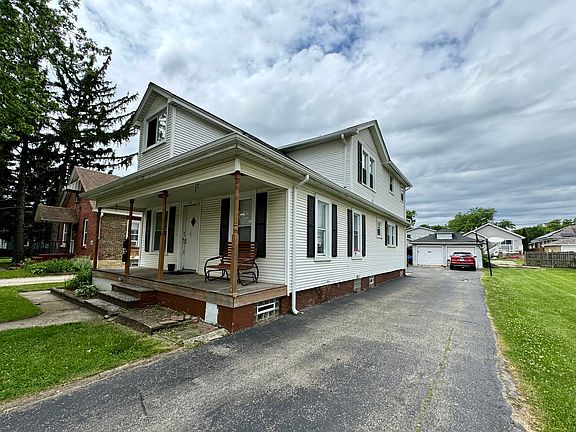 Two-unit property with new siding, situated on a spacious double lot, featuring a two-car garage. The garage, accessible via a newer driveway, spans both lots. This investment opportunity is a 2-flat house with additional features including hardwood floors, enclosed porches, and ample living space. There are current tenants.