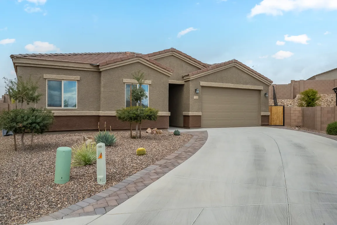 - Features: Cul-De-Sac, East/West Exposure, Landscape - Front: Decorative Gravel, Desert Plantings, Shrubs, Sprinkler/Drip, Trees, Landscape - Rear: Artificial Turf, Decorative Gravel, Desert Plantings, Low Care, Sprinkler/Drip