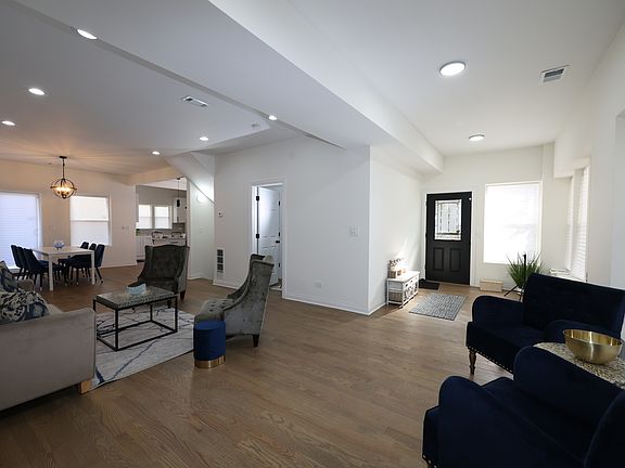 Discover modern living in highly sought-after East Beverly! This beautifully renovated home blends style and comfort, beginning with a stunning gourmet kitchen featuring shaker cabinetry, quartz countertops, a generous island, and stainless steel appliances. Oak plank hardwood floors flow through the main level's open living and dining areas, leading to a private patio that's perfect for entertaining. The first floor offers three comfortable bedrooms and a full hall bath, while the entire second level is dedicated to a luxurious primary suite with a spacious walk-in closet, a private sitting area, and a spa-inspired bath with a soaking tub. The expansive finished basement adds incredible living space, complete with a large family room, full wet bar with mini-fridge, additional bedroom, stylish full bath with floor-to-ceiling porcelain tile, and a dedicated laundry room with sink and dryer hookup. Recent upgrades include a new 90 high-efficiency HVAC system, 50-gallon hot water tank, drain tile system, ejector pump, and 200-amp electrical-all completed to Chicago code. Situated on a large lot with a two-car garage and driveway, this home truly has it all.