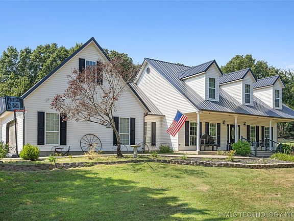 Welcome to this stunning 5-Acre property in Checotah, Oklahoma. This home features 5 bedrooms, 2.5 baths, one main living area and a versatile upstairs flex room that can serve as a game room, office, or guest suite. Recent updates include a renovated interior and new metal roof in 2023. Experience the country living with pipe-fenced gated entrance, mature trees for privacy, a large covered patio, picturesque pond, and open acreage for endless opportunities! A spacious shop adds incredible value with room for storage, equipment, hobbies, or projects—making it a dream setup for property owners, ranchers, or outdoor enthusiasts. If you’ve been looking for the perfect place to start a hobby farm, raise animals, or simply seek both privacy and convenience, this property delivers. Adding to the appeal, this property boasts great game hunting right on your land, making it a rare find for outdoor enthusiasts. All this just minutes from the town of Checotah, dining, shopping, and Lake Eufaula activities. Don’t miss the chance to make this exceptional property your forever home—schedule your private showing today!