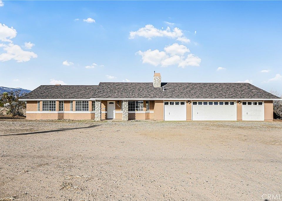 This stunning move-in-ready home has been freshly painted inside and out, with new trim paint enhancing the exterior and a full interior repaint bringing a crisp, modern feel to every room. Step into the beautifully updated kitchen, where a butcher block island complements gleaming granite countertops, brand-new stainless steel appliances, and stylish new light and plumbing fixtures, creating a perfect space for cooking and entertaining. Throughout the entire home, brand-new plank flooring flows seamlessly through the common areas, while plush new carpet adds warmth and comfort to the bedrooms. The master suite is a true retreat, featuring a wood-burning fireplace, a spacious walk-in closet, a luxurious dual vanity, a custom-tiled shower, and a freestanding tub. A sliding door leads from the master to the expansive backyard, inviting you to step outside and enjoy the serenity of your surroundings. The home also boasts two inviting living areas, a cozy pellet stove in one and a classic wood-burning fireplace in the family room. The attached four-car garage is a dream, offering laundry hookups, ample storage cabinets, a built-in workbench, and plenty of parking space, all on a massive lot. The backyard is fully fenced with durable chain link, ensuring privacy and security, while the covered patio provides a shaded retreat to take in the breathtaking views. The spacious landscape offers endless possibilities, whether you envision a garden, play area, or additional outdoor living space. Located in a prime setting with stunning views, this home provides both tranquility and convenience. Don't miss the chance to experience this incredible property—schedule your showing today!