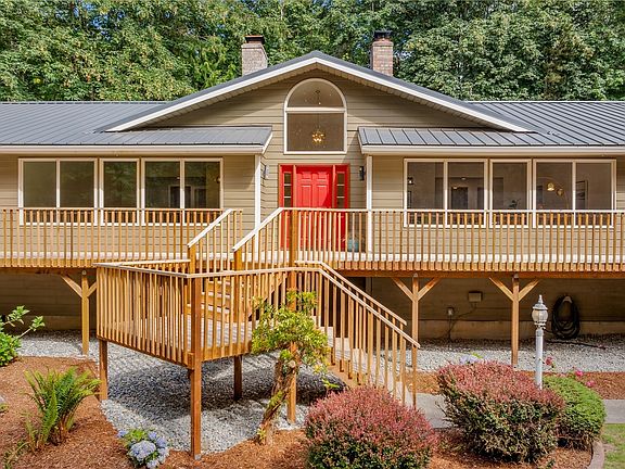 Remarkable, MULTIGENERATIONAL, one of a kind property! This home offers multigenerational living in two separate, identical wings of the home, each featuring a primary bedroom, great room, spare bedroom, full bath and utility room! The north and south wings are separated by a kitchen so large you can host your very own cook off. The possibilities are endless! It can even function as single-level living with no stairs to access! The lower level features a flex space which is perfect for a game room. Cozy up in the winter to one of the three fireplaces! Enjoy the grand deck in the summers! Flexibility, privacy, yet still close to everything Kitsap! This home offers whatever you may need and more. Come and dream before it's gone!