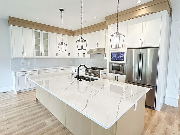 Discover refined living in this Maple Ridge home with 4 bedrooms upstairs and a main floor office with French doors. Bright interiors feature wide windowsills, an open living and dining area, and a gourmet kitchen with quartz waterfall island, white cabinetry, and built-in stainless appliances. The primary suite offers vaulted ceilings, spa-style ensuite with soaker tub and rain shower, make up vanity, plus a custom walk-in closet. Additional bedrooms are spacious and light-filled. Enjoy a covered patio, fully fenced yard, and double garage with wide driveway. Located in a quiet community near top schools, parks, trails, and Golden Ears Park, with easy access to shopping and commuter routes. The lower level of this property can be rented as well, the rent would be $6000