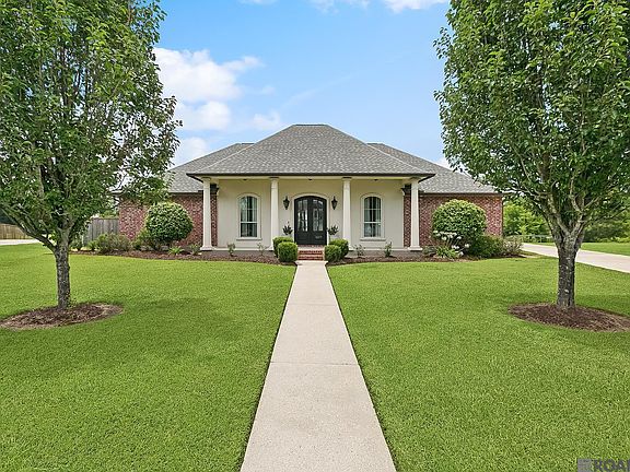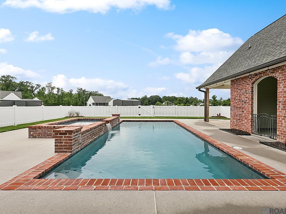 Looking for the perfect home in a desirable Ascension Parish neighborhood? This one has it all! Nestled on a spacious cul-de-sac lot, this 5-bedroom home with a large upstairs bonus room (ideal for a 6th bedroom, playroom, or media room) is a rare gem. Enjoy 2.5 bathrooms, a functional office nook, and a split floorplan that offers both privacy and great flow. The custom kitchen features an eat-in area, large pantry, and opens to a lovely dining room and welcoming foyer, all bathed in natural light. There's also a mudroom/drop zone conveniently located near the garage. The living space boasts wood floors, a cozy fireplace, and plenty of room to gather. The primary suite includes a spacious en suite bath with double vanities, separate shower and a large closet. Step outside and you'll fall in love with the gunite pool and spa, complete with a waterfall from the hot tub into the pool—perfect for entertaining or relaxing. Multiple covered patio areas ready for your dream outdoor kitchen setup, and the peaceful backyard sits at the corner of both Duckroost and Black Bayou, offering incredible waterfront views and fishing right in your own backyard. One of the downstairs bedrooms is truly unique, currently styled as a mancave but would be a country boy's dream bedroom with cathedral ceilings lined in tin and custom selected/cut & planed wood walls and floors—a perfect space to showcase trophies or create a rustic retreat. Wired/generator ready. With an excellent layout, ample space, storage, tons of charm, and unbeatable outdoor amenities, this home is ready to welcome you. The possibilities are endless!
