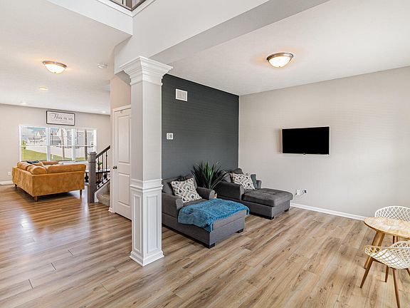 This stunning, 5-bedroom move-in-ready residence boasts 3,387 above-grade square footage on nearly a 1/2-acre lot, combining luxury with comfort. Step through the front door into a flexible room perfect for an office or den and follow the hall to an open-concept kitchen that will impress any chef. Featuring granite countertops, stainless steel appliances, a center island, and slow-closing cabinets and drawers, this kitchen is both beautiful and functional. A huge butler's pantry and expanded breakfast room offer additional space for storage and dining. The great room, complete with a cozy fireplace and a sunroom filled with natural light, provides ample space for relaxation and entertainment. Elegant architectural trim details, a Wi-Fi thermostat, and a Ring doorbell add modern convenience and style. The main floor includes a bedroom, perfect for guests or as a home office. Upstairs, a spacious loft and a finished laundry room await. Four bedrooms, each with walk-in closets, ensure plenty of space for everyone. The owner's suite is a true retreat, featuring French doors, a tray ceiling, a spacious walk-in closet, and an en-suite bathroom with a tiled shower and a whirlpool tub. Enjoy the added convenience of direct access to the laundry room from the owner's bath. The fully insulated 3-car garage, complete with a garage service door, drywall, and canned lighting, is perfect for vehicles and storage. The full basement, with rough-in plumbing, offers endless potential for customization. Outdoor living is a breeze with a concrete patio and a welcoming front porch, ideal for enjoying sunny days and evenings under the stars. Don't miss the opportunity to own this exquisite home that perfectly blends elegance, functionality, and modern amenities. Additionally, this home offers easy access to major highways, making your commute a breeze. Current Taxes do not reflect exemptions. 2024 exemptions have been filed. Schedule your tour today.