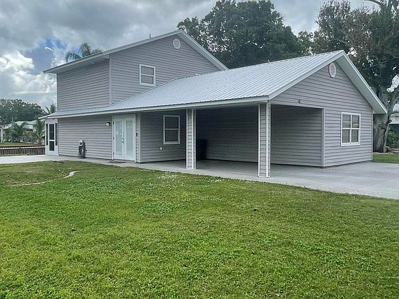 Charming Lake Access Home in Buckhead Ridge - Enjoy 65 ft of water frontage. This inviting 2-bedroom, 2-bathroom home features a spacious upstairs primary suite with a walk-in closet and an en-suite bathroom with a large shower and soaking tub. Enjoy the perfect separation between the primary suite and the guest bedroom downstairs, ensuring privacy for all. The generous eat-in kitchen is well-equipped with plenty of cabinet and counter space. Recent updates include a new refrigerator (2024), New Dryer(2024), A/C (2023), metal roof (2020), and a new Vivint security system. Relax on the patio or dock and savor the tranquility of this peaceful community. Just 7 miles from local shops and amenities. Don't miss this opportunity to own a beautifully maintained home with Lake Okeechobee access!