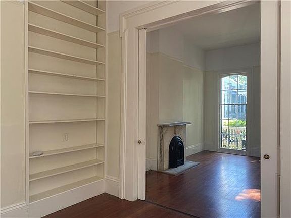 A stunning Victorian double in the heart of the Garden District. This beautiful 2-bedroom features recently renovated hardwood floors, a walk-in closet, and a washer/dryer on-site. Expansive living room with pocket doors and built-in shelves connects to suitable kitchen with included appliances - refrigerator, oven, stove, and cabinet storage galore. Floor-to-ceiling windows fill the space with natural light. Enjoy a tranquil morning on the shared front porch or unwind in the afternoon in the private, fenced back yard. Separate storage shed in the rear. Half a block from Magazine Street shopping, restaurants, etc.