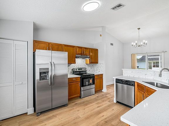 Prime Vero Beach location close to shopping, dining & the beach. NO HOA! This beautifully remodeled 3 bedroom, 2 bathroom home features a modern kitchen with bar top seating, quartz counters, upgraded cabinets, custom backsplash & stainless steel appliances. Freshly painted inside & out with new flooring throughout, new baseboards, LED lighting, stylish fixtures & fans in every room. Enjoy updated bathrooms with stylish finishes + stay cool in the spacious screened patio with fan. This home is complete with a New roof (2025), New AC (2025) & water heater (2023). 9 minutes or less to the beach!