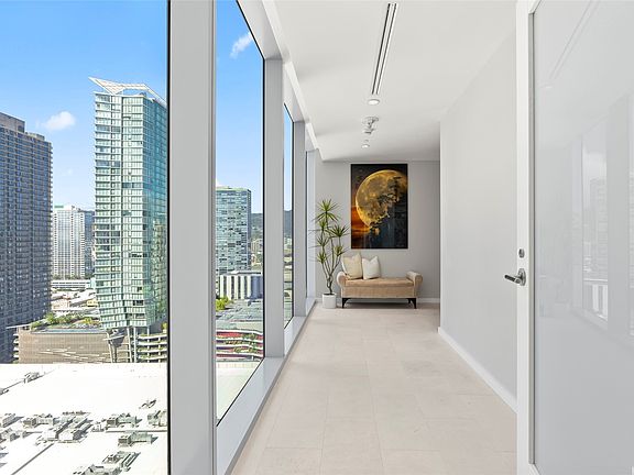 Enter through a private foyer into a spacious, elegantly designed home with 9’6” ceilings, hardwood floors, and floor-to-ceiling glass that frames every breathtaking vista. The chef’s kitchen features Miele appliances, gas cooking, European cabinetry, and a wine fridge. The master suite boasts a spa-inspired bath with a freestanding tub and onyx finishes.