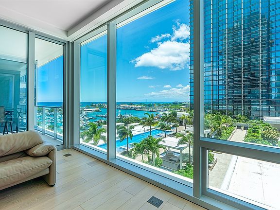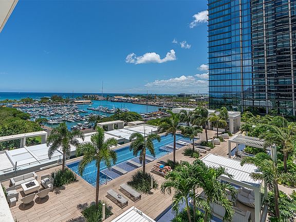 Waiea, the luxurious flagship building in the heart of vibrant Kakaako. This spacious one bedroom and two bathroom unit comes with lanai. Enjoy beautiful ocean, harbor and sunset view. High 10-foot ceilings, Miele appliances, double glazed/Low-E coated glass, motorized window shades, hardwood flooring, and top-of-the-line plumbing fixtures by Dornbracht and Toto. Enjoy abundant world-class amenities including guest suites, a fitness center with yoga room, steam sauna, golf simulator, infinity edge ocean view pool, hot tub and dog park. Whole Foods, Ward Village's many shops, restaurants, and Ala Moana Beach Park all nearby. This extraordinary opportunity is waiting for you.