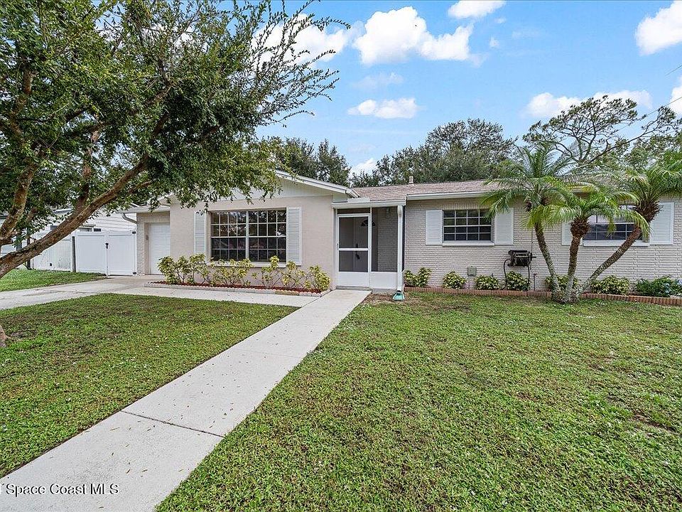 PRICE IMPROVEMENT! Move in Ready 3 bdr/2 bath in the heart of Rockledge offers a Living, Dining and Family room with eat in kitchen & breakfast bar. Tiled Kitchen offers tons of custom cabinet space & Large pantry as well as granite countertops. New dishwasher & Microwave, SS Refrigerator. Brand new carpet & remodeled master bath w/ 2yo carpet in guest rooms. Newly screened in porch leads out to your private backyard. New roof in 2021, AC 2020 w/ 18.5 Seer & Halo Purification & 10 Yr Warranty. Oversized fenced in backyard with White PVC gates installed in 2022 on both sides. All windows on back and side of house including slider door have been replaced. 1 Car garage has plenty of storage. Popcorn Ceilings have been removed & newer light fixtures & fans throughout. Home has been stuccoed and has lovely curb appeal. Pipes from front of home to road have been replaced & clean outs installed. Newer paint inside & out.