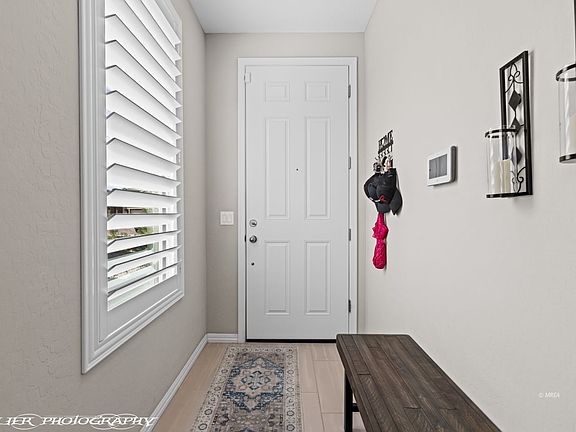 Perfect Pine Springs Model with. Welcome to this stunning Sun City Mesquite Pine Springs model home. This beautifully appointed home offers a thoughtfully designed living space that feels fresh and inviting.The heart of this home features a spacious kitchen with room for either an island or dining table, making it perfect for both daily meals and entertaining guests. Custom cabinet design includes oversized drawers for maximum storage, complemented by elegant Calcatta quartz countertops. Beautiful tile flooring extends throughout the main living areas, while comfortable carpeting graces the den & bedrooms. Plantation shutters add sophisticated charm while flooding the interior with natural light. The home comes move-in ready with ceiling fans & pendant lighting already installed, eliminating the guesswork of immediate upgrades.Step outside to discover a completely landscaped & fully fenced yard. Two custom pergolas add architectural interest and create perfect spots for outdoor relaxation or dining. This property combines the best of Sun City Mesquite living with thoughtful design elements throughout. The home represents an excellent opportunity for buyers seeking a well-appointed residence that is move in ready!