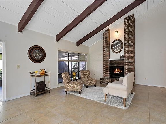 Move right in to this cozy low maintenance villa in the heart of Tuscawilla. 20" tile and laminate flooring throughout, eat in kitchen with updated cabinetry, updated bathrooms, huge master bedroom with walk in closet, gorgeous vaulted beamed ceilings and brick fireplace in the open great room. Relax on the over sized screened porch overlooking the spacious garden like backyard. Two car garage plus golf cart area. Get rid of your lawn mower. The HOA mows the lawn for you. Walk to excellent dining, the Tuscawilla Country club offering social, swimming, tennis, fitness and golf memberships and the golf course is easily accessible through the private neighborhood path.