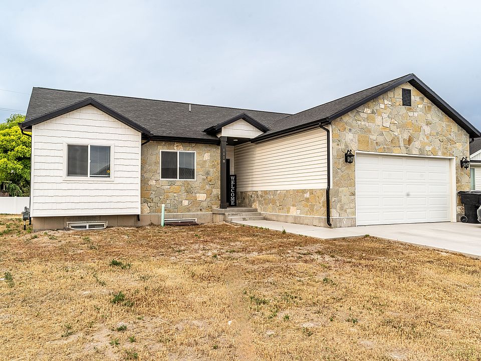 Welcome to this charming Garland home in a peaceful neighborhood! With 3 bedrooms and 2 full bathrooms all on one level, it offers easy, single-level living. The open living area flows into the kitchen and dining space, creating a bright, inviting atmosphere. Enjoy a covered patio and a mostly fenced yard ready for your personal touch. An unfinished basement provides extra space to expand, and the 2-car garage adds convenience. A perfect blend of comfort, flexibility, and potential!