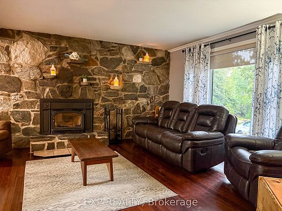 Welcome to this charming bungalow on a quiet, scenic dead-end road in the heart of Calabogie. Surrounded by mature trees and natural beauty, this property offers the perfect blend of privacy and convenience. Just minutes to Calabogie Peaks Ski Hill, the golf course, and village amenities. Inside, the main level features an open-concept kitchen, dining, and living area anchored by a stunning floor-to-ceiling fieldstone fireplace with a newer airtight wood insert. Three comfortable bedrooms and a full four-piece bath complete this level.The finished basement extends your living space, ideal for a family rec room and home office. Outdoors, enjoy summers by the above-ground pool and expansive back deck overlooking the surrounding bush. Perfect for young families or anyone who loves to entertain. This Calabogie gem offers four-season living in a sought-after recreational community.