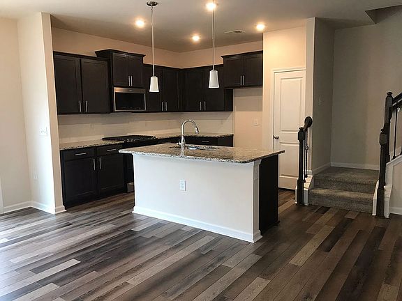 This three bedroom, two and a half bathroom townhouse includes a living room, dining room and a kitchen equipped with granite countertops, a kitchen island. There is hardwood flooring in the kitchen, living room and carpeting in the bedrooms. The unit features air conditioning, in-unit laundry, walk-in closet, recessed lighting. Outside features include a private patio. Garage parking is available.