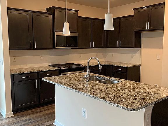 Recessed lightingPrivate patioHardwood flooringCarpeting in the bedroomsKitchen islandGarage parkingGranite countertops