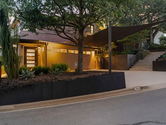 Striking Mid-Century Modern in Travis Heights This architecturally captivating mid-century modern home blends iconic design with elevated contemporary style. Rebuilt, updated, and thoughtfully expanded in 2013 by a previous owner, the home showcases clean lines, geometric forms, and curated interiors featuring designer wallpaper and modern finishes that create a warm yet sophisticated atmosphere. A dramatic oak tree welcomes you in the front yard and sets the tone for the open-concept living, dining, and kitchen areas filled with natural light. The kitchen, beautifully updated in 2025, showcases new cabinetry, polished concrete countertops, and a stylish backsplash. Premium Viking appliances add a professional touch to the space. The main floor offers two spacious bedrooms and two full baths, including an ensuite with a walk-in shower. The primary suite is privately located on the second level and features dual vanities, a walk-in shower, and a custom walk-in closet. A flexible layout allows the upper portion of the home—with its own bedroom, bath, and living area—to be closed off with a private entrance, ideal for guests or potential Airbnb income. Enjoy seamless indoor-outdoor living through a private breezeway and three separate balconies. The heated pool with lighting and swim jet, installed in 2021, provides a resort-style retreat surrounded by lush greenery. With a durable metal roof and timeless mid-century aesthetic, this Travis Heights gem offers style, comfort, and versatility in one of Austin’s most sought-after neighborhoods.