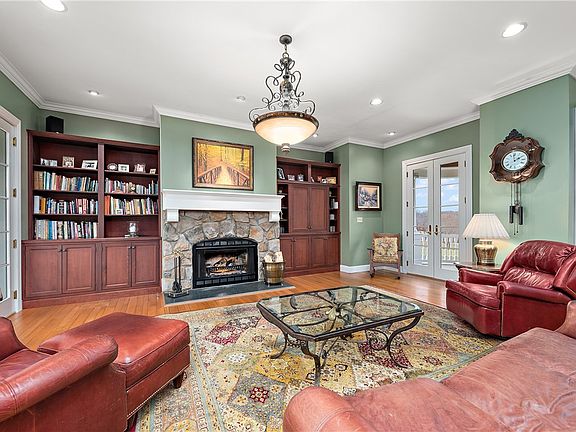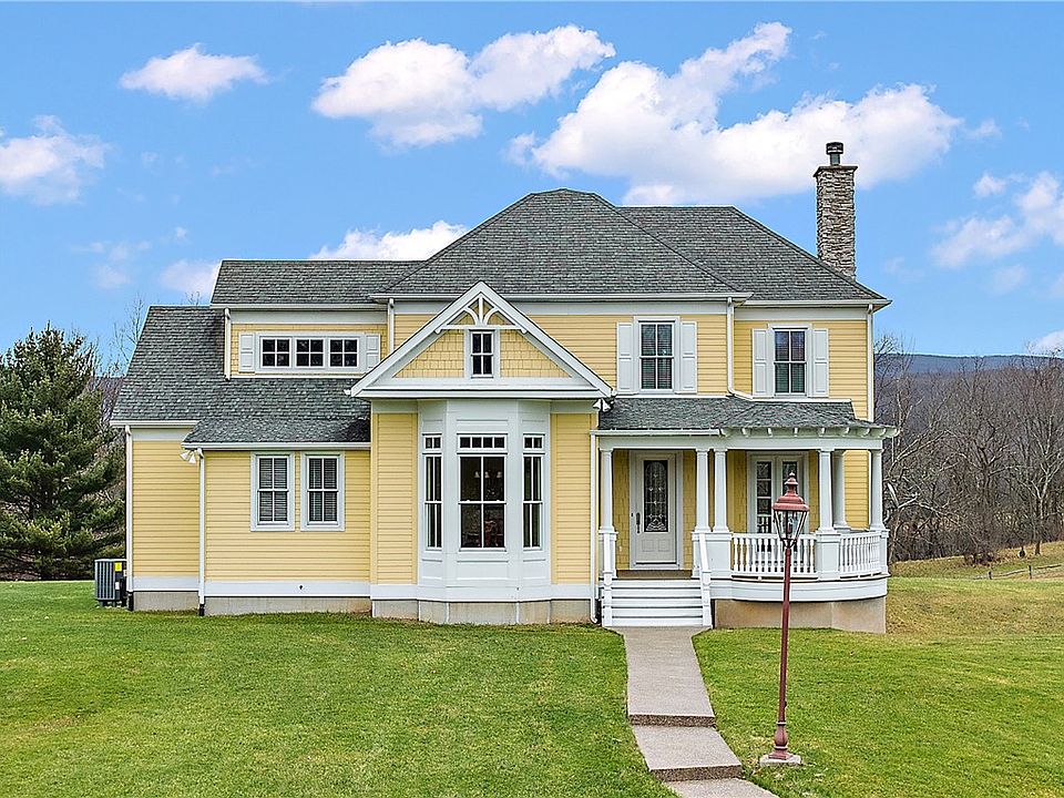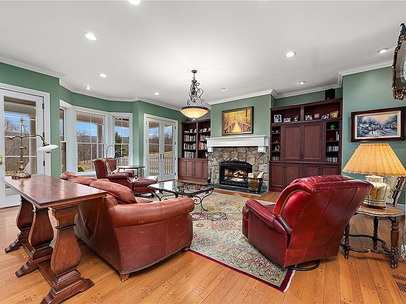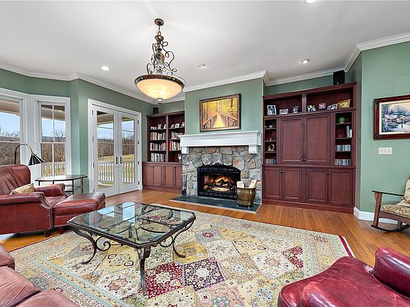 This beautiful home, custom-built in 2004, sits on over nine private acres just minutes from Historic Downtown Ligonier. The main floor is bright and open, featuring a large family room centered around a wood-burning fireplace, a formal dining room with stunning views of the property, a chef's dream of a kitchen, first floor owner's suite and laundry room, a half bath for guests, and access to the spectacular front and back porches. Head upstairs to find the two additional en suite bedrooms and a flex space currently in use as a home office/reading nook. Further up the driveway you'll find a huge detached garage with enough room for a workshop and two additional vehicles, plus a fully-finished 24x23 upstairs office, complete with a half bath. Additional highlights include wormy wood hardwood floors throughout, garage parking for four vehicles, a new water well, new furnace, high-end stainless steel kitchen appliances, new concrete back patio, plus tons of additional storage space.